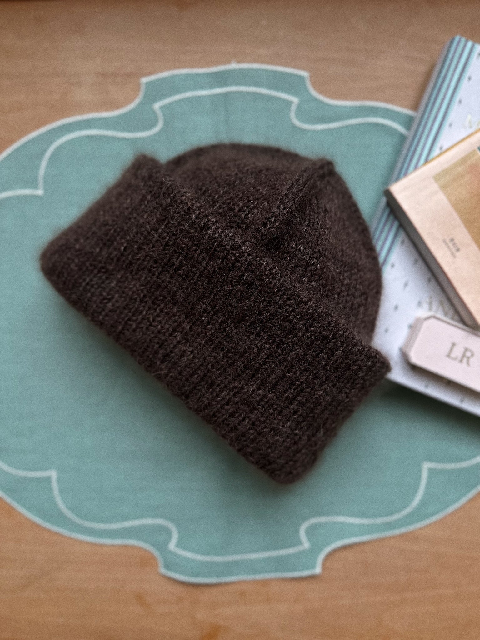 Beanie No. 7 er en let og blød hue med dekorative i-cord kanter. Et dobbelt ombuk forneden giver ekstra fylde.