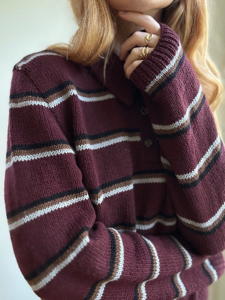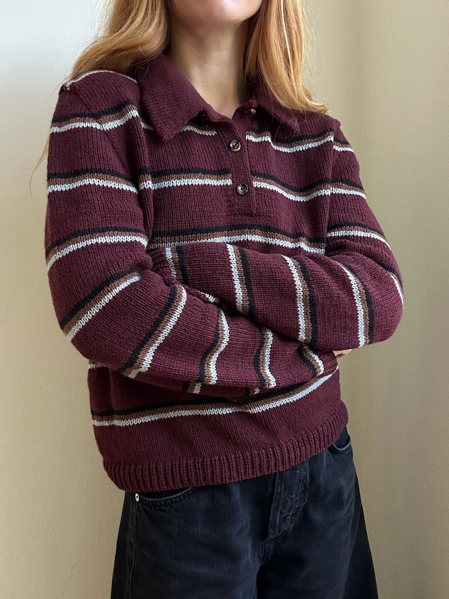 Polo No. 1 er strikket bluse med polokrave i klassisk snit. Pasformen er let oversize.