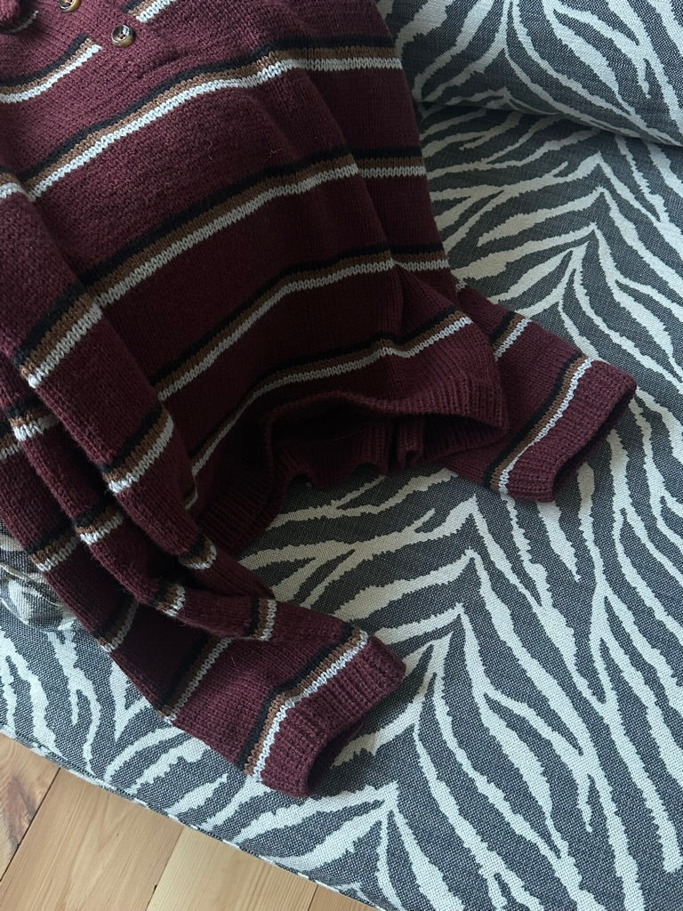 Den dobbeltstrikkede krave er udformet med stand og stolpe, og giver i samspil med de fine ribkanter et luksuriøst udtryk.